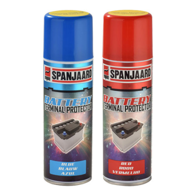 Protect your vehicle's battery with Spanjaard Battery Terminal Protector – available in Red and Blue (200ml)
