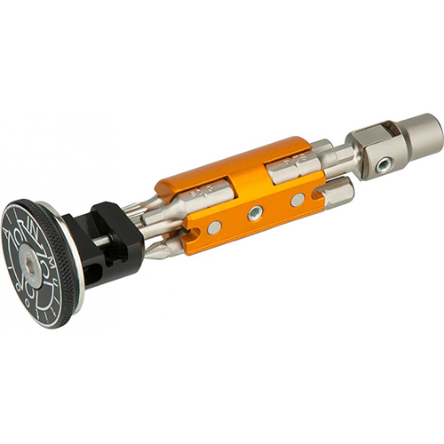 The tool comes stock with a 3mm, 4mm, 5mm, and 6mm Allen key bits, a t25 torx head, and a #1 Phillips head screwdriver.