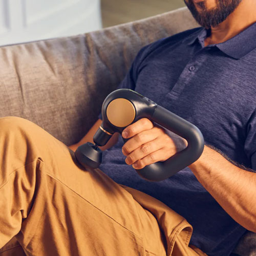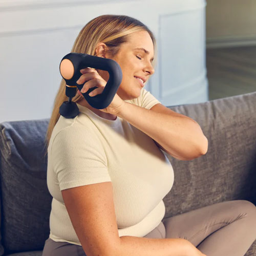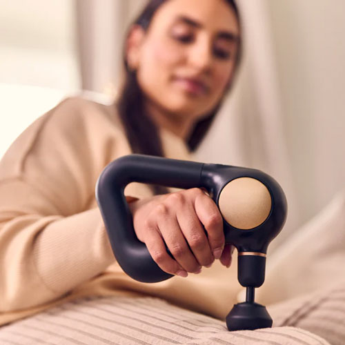 Theragun Sense is a calming, guided massage therapy device designed to relieve pain, reduce stress and improve sleep quality. With biometric feedback and step-by-step routines, it supports everyday wellbeing with ease and comfort.