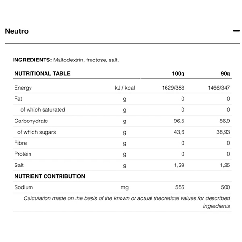 Fuel long endurance sessions with a clean, neutral-tasting formula designed for maximum carbohydrate absorption. This vegan-friendly, gluten-free sports drink combines maltodextrin and fructose in a 10:8 ratio to deliver 87 g of carbohydrates and 500 mg of sodium per 90 g serving, providing 347 kcal of fast and sustained energy without added flavouring.