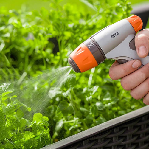 he Neta 12mm Adjustable Click-On Jet Gun is the perfect solution for watering flower beds and performing general garden cleaning tasks. The wire trigger clip allows continuous watering and auto shut-off trigger control ensures water conservation.