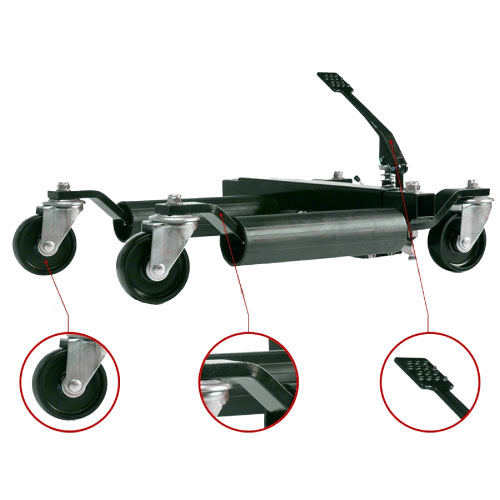 The heavy-duty vehicle positioning wheel dolly is the ideal solution for effortlessly moving disabled or inoperable vehicles. Perfect for workshops, garages, and showrooms, this hydraulic dolly allows you to shift a vehicle backward, sideways, or even rotate it 360°—maximizing maneuverability, space, and safety. Whether you're dealing with cars, trailers, or light commercial vehicles, this dolly makes repositioning heavy loads easy and precise.