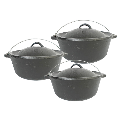 Cast iron is the perfect cookware for the great outdoors. Perfect for slow cooking tasty stews or browning pot breads. Tough + rugged, cast iron simply does not wear out.