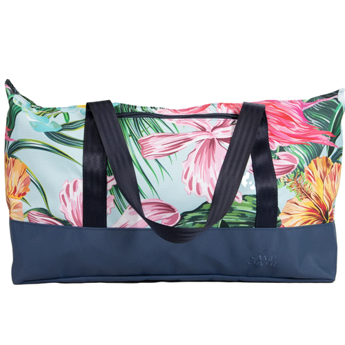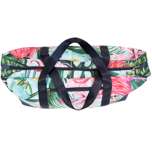 Oversized tote bag with spacious 38 L capacity, easy-clean lining, sturdy handles and front zip pocket – ideal for travel, beach, shopping and everyday use.