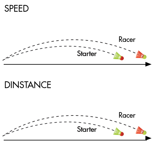 Content: 2x Starter Shuttles (speed: medium, red head), 4x Racer Shuttles (speed: fast, yellow head).
