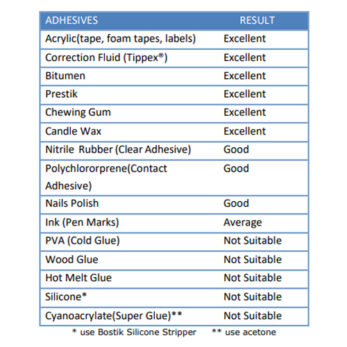 - Effective removal of a diverse range of adhesives