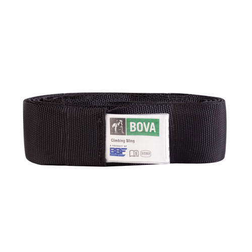 The sling is comprised of 38mm seat belt webbing that is encased into 50mm tubular webbing to protect the equipment against abrasive material thereby enhancing the durability of the sling and improving the safety to the user.