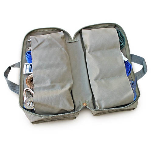 An invaluable seven pocket organiser and storage bag for all tie-down equipment that is suitable for ratchet straps, guy-ropes, cords etc.
