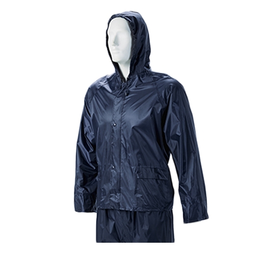 Dromex rubberized rain suits that have a hood, zip and storm flap