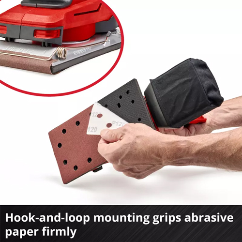 - Quick Abrasive Changes: Micro hook and loop fastening system for rapid and secure sandpaper swaps.