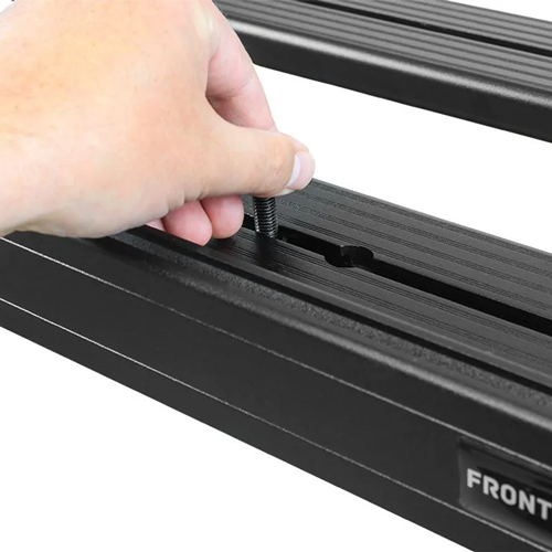 The t-slots on the tray slats and edges accommodate standard 8mm bolts, making it easy to attach accessories like bike mounts, jerry can holders, or rooftop tents.