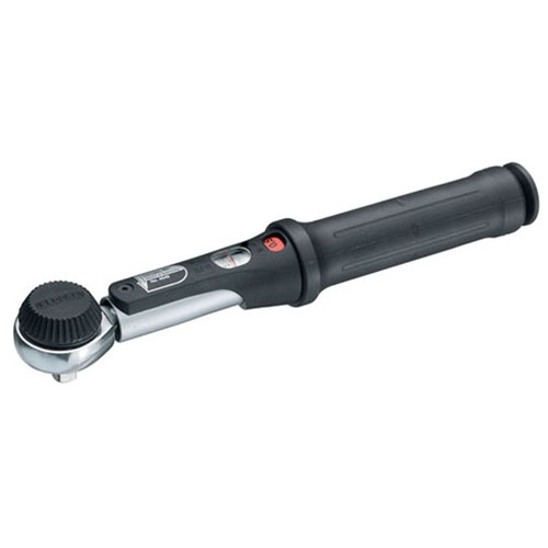 • Adjustable torque wrench with a square drive and integrated ratchet head function.
