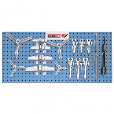 Clearly arranged modular system on pegboard