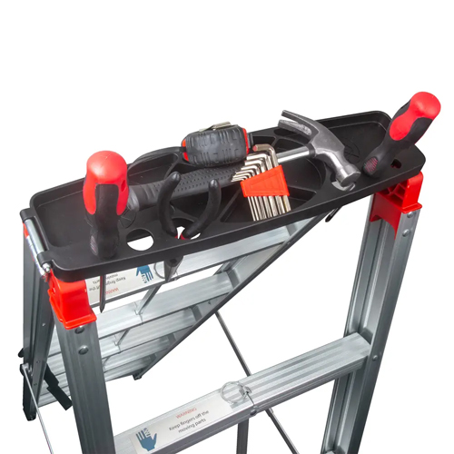 Anti-slip tread steps and a secure locking mechanism offer peace of mind while working at heights.