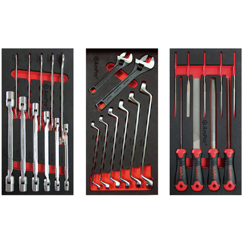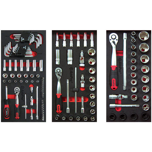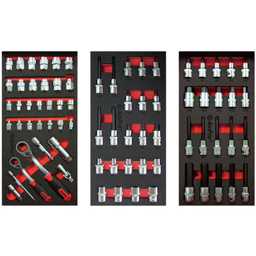 - 14x 3/8" Dr. 6pt Sockets: 8, 9, 10, 11, 12, 13, 14, 15, 16, 17, 18, 19, 21, 22mm