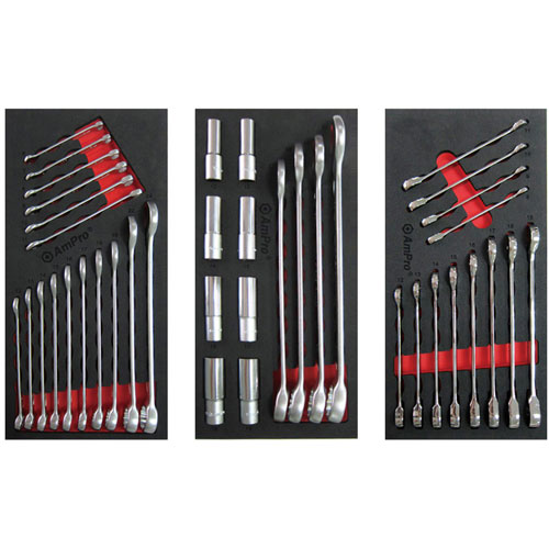 - 18x 1/2" Dr. 6pt Sockets: 10, 11, 12, 13, 14, 15, 16, 17, 18, 19, 20, 21, 22, 23, 24, 27, 30, 32mm